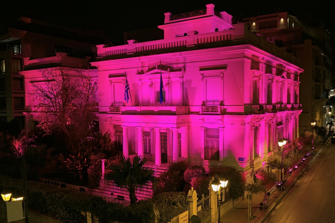 Το ιστορικό και εμβληματικό κεντρικό κτίριο του Μουσείου Μπενάκη φωταγωγήθηκε φέτος με το χαρακτηριστικό ροζ χρώμα, στo πλαίσιo της παγκόσμιας πρωτοβουλίας φωταγώγησης μνημείων και κτηρίων οροσήμων, για την εκστρατεία ενημέρωσης για τον καρκίνο του μαστού, της The Estée Lauder Companies.